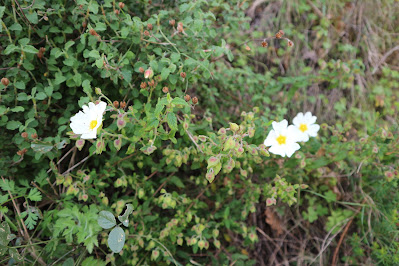 Etter en oppovertur, fant jeg grusveien videre gjennom drueåkrene og olivenlundene. Det blomstrer i busker, frukttrær og ville blomster. Jeg tok meg en pause der, mellom blomstene og trærne med utsikt utover.